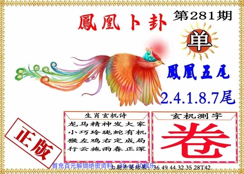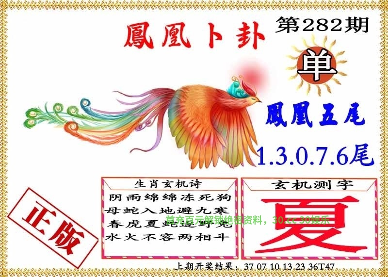 285期:玄机测字【高】开:马24 玄机七肖:猴牛鼠猪龙马狗 卜卦单双:双数 卜卦五尾:1.4.0.7.6 |