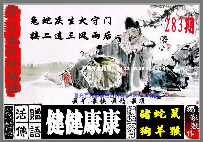 284期:济公特码诗 贪图享受家败光,寒冬白雪满天飞。 解:龙马牛猪兔猴。 活佛赠语:【孙子兵法】 解:鼠 七肖:龙马牛猪兔猴鼠 五肖:龙马牛猪兔 三肖:龙马牛 |